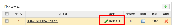 ページの追加後、「編集する」をクリックすることで、ページの編集に進むことができます。