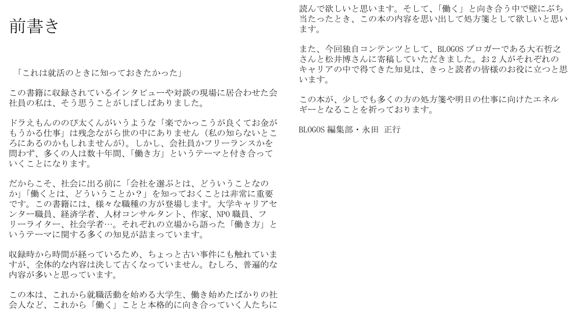 その中から特に提言性の高い『就活・雇用』記事をピックアップし電子書籍化しました。